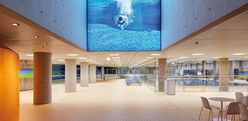 Wer hier schwimmt, spürt den Geist der Olympischen Spiele von 1972. Die Zuschauertribüne und das weltberühmte Dach machen die Olympia-Schwimmhalle einzigartig. Drei Jahre lang wurde die Anlage umfangreich modernisiert - und im November 2019 wurden die Arbeiten endlich abgeschlossen. Für die Olympia-Schwimmhalle in München wurden projektspezifische Sonderleuchten von SITECO entwickelt, die auch unter den besonderen Bedingungen zuverlässig funktionieren. Gleichzeitig bilden sie dank Tunable-White-Funktion den Tageslichtverlauf im Schwimmbad nach und sorgen für eine angenehmene Atmosphäre.