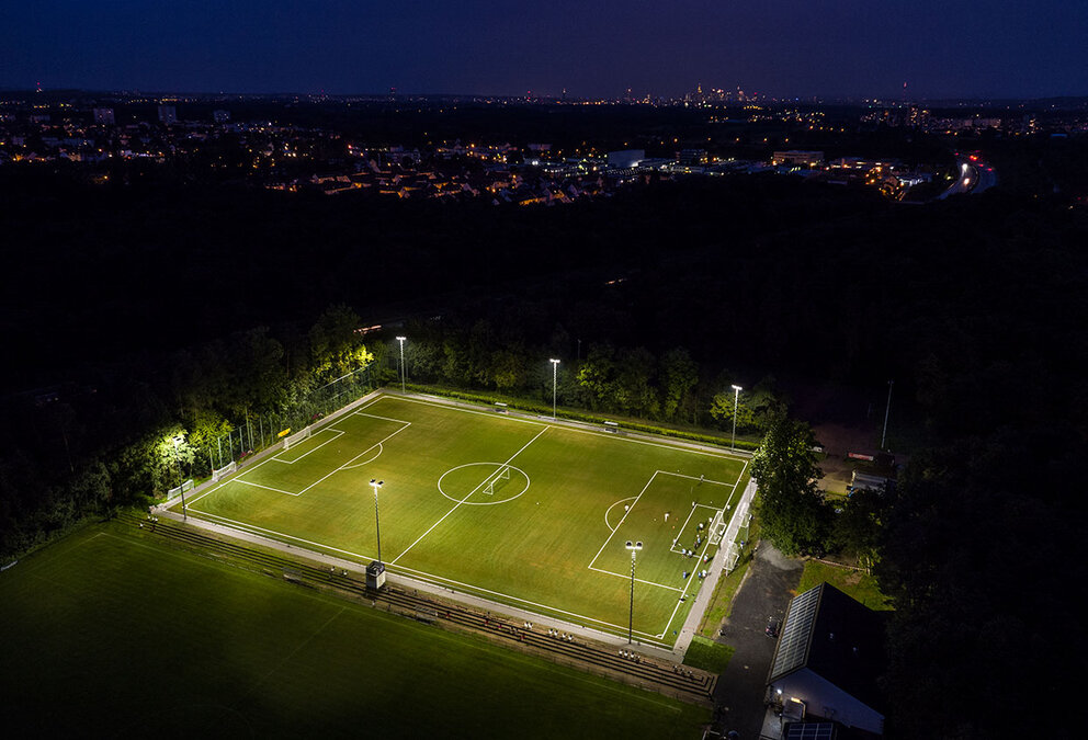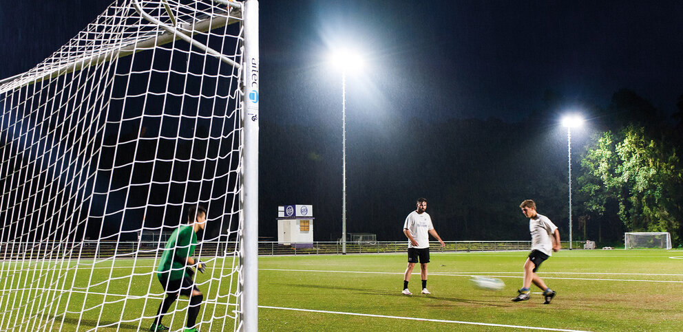 Je besser das Licht, desto mehr Spaß macht der Sport. Für den Fußballverein 1. FC Hochstadt e.V. übernahm SITECO die Planung einer neuen innovativen Spielfeldbeleuchtung mit den leistungsstarken Floodlight FL 20 und zwei verschiedenen Licht­verteilungen. Verschiedene Lichtniveaus und die Flexibilität der Schaltung sorgen für hohe Effizienz und niedrige Betriebskosten: Dazu zählt beispielsweise die getrennte Beleuchtung der Spielfeldhälften oder die partielle Dimmung auf halbe Beleuchtungsstärke. Das erweitert den Nutzungshorizont und sorgt für bedarfsgerechte Beleuchtung - egal ob reguläres Fußsballspiel, Lauftraining oder kleinere Trainingseinheiten.
