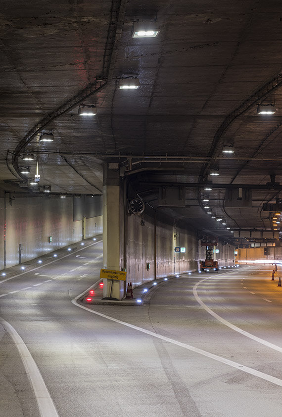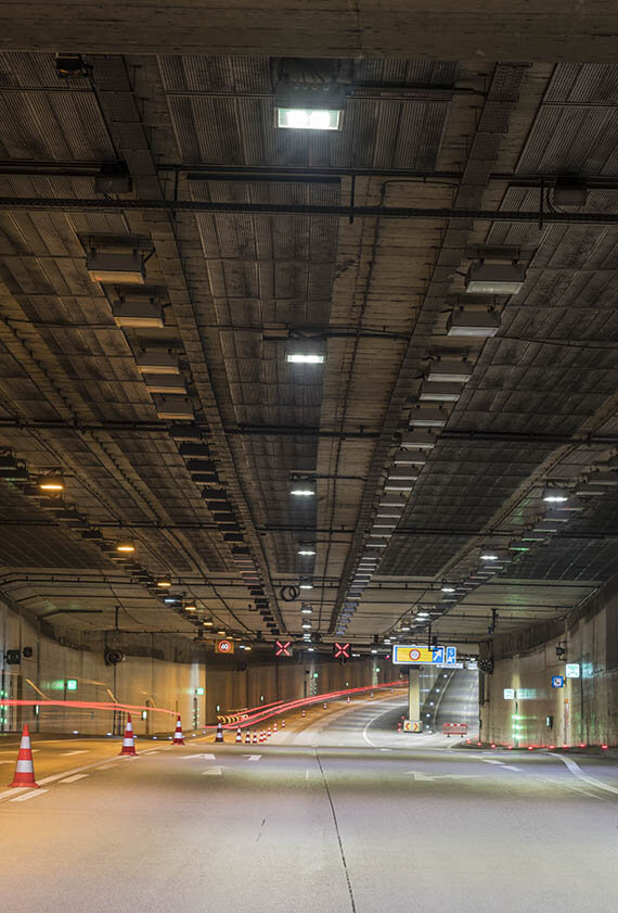 Licht zählt in Tunneln zu den ganz entscheidenden Sicherheitsfaktoren. Dass man dieses Thema zukunftssicher umsetzen und dabei noch Energie und Kosten sparen kann, zeigt die Sanierung der beiden stark befahrenen Tunnel Bindermichl und Niedernhart im Linzer Stadtgebiet. SITECO ersetzte in dem Tunnelsystem die eigenen NAV-Leuchten aus dem Jahr 2005 durch eine kundenspezifische LED-Lösung. Die Herausforderung dabei: Aus Zeit- und Kostengründen sollten die alten Lichtpunkte mit bis zu 22 Metern (!) Abstand weiter genutzt werden, gleichzeitig sollte aber ein verbessertes, gleichmäßiges Beleuchtungsniveau entstehen, ganz ohne Blendung. Und genau das erreichte SITECO durch die Kombination einer selbst entwickelten, leistungsstarken LED-Plattform mit spezieller Linsentechnologie. „Bei diesem Projekt hat SITECO bewiesen, dass der hervorragende Ruf in Sachen Tunnelbeleuchtung mehr als gerechtfertigt ist“, sagt Kurt Portschy, Bereichsleiter der Asfinag. Denn das Ergebnis kann sich sehen lassen: Trotz 25% mehr Licht verbrauchen beide Tunnel heute 45% weniger Energie in der Durchfahrtsbeleuchtung.