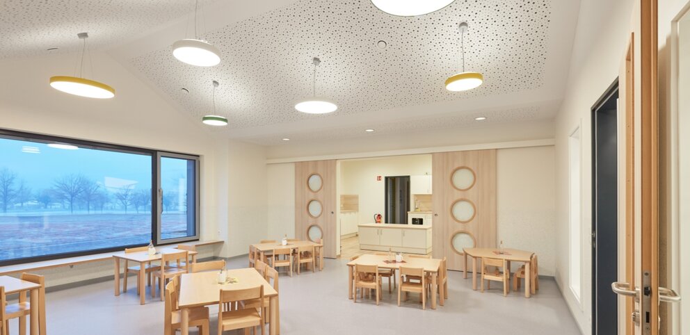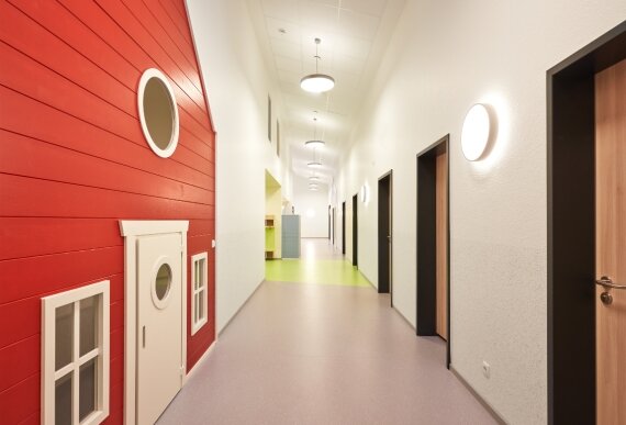 Das individuelle Beleuchtungskonzept von SITECO schafft eine freundliche Atmosphäre und taucht die Kita in ein einladendes Licht: gleichmäßige Grundbeleuchtung sorgt für Sicherheit, sanfte Akzente zonieren Spiel-, Lern- und Ruhebereiche. Das Licht ist optimal an die jeweilige Raumnutzung angepasst – warme Töne für Entspannung, neutralweißes Licht für Aktivität und Konzentration.