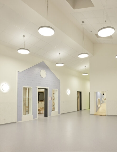 So entsteht eine Erlebniswelt, in der Pädagogik, Architektur und Licht sichtbar zusammenwirken – und in der sich Kinder frei entfalten können.