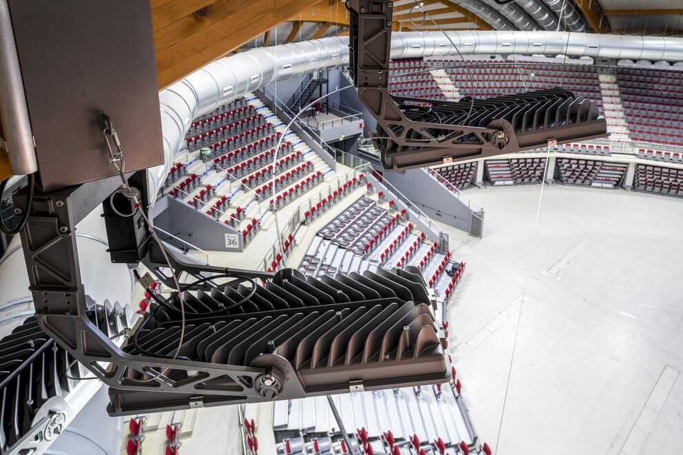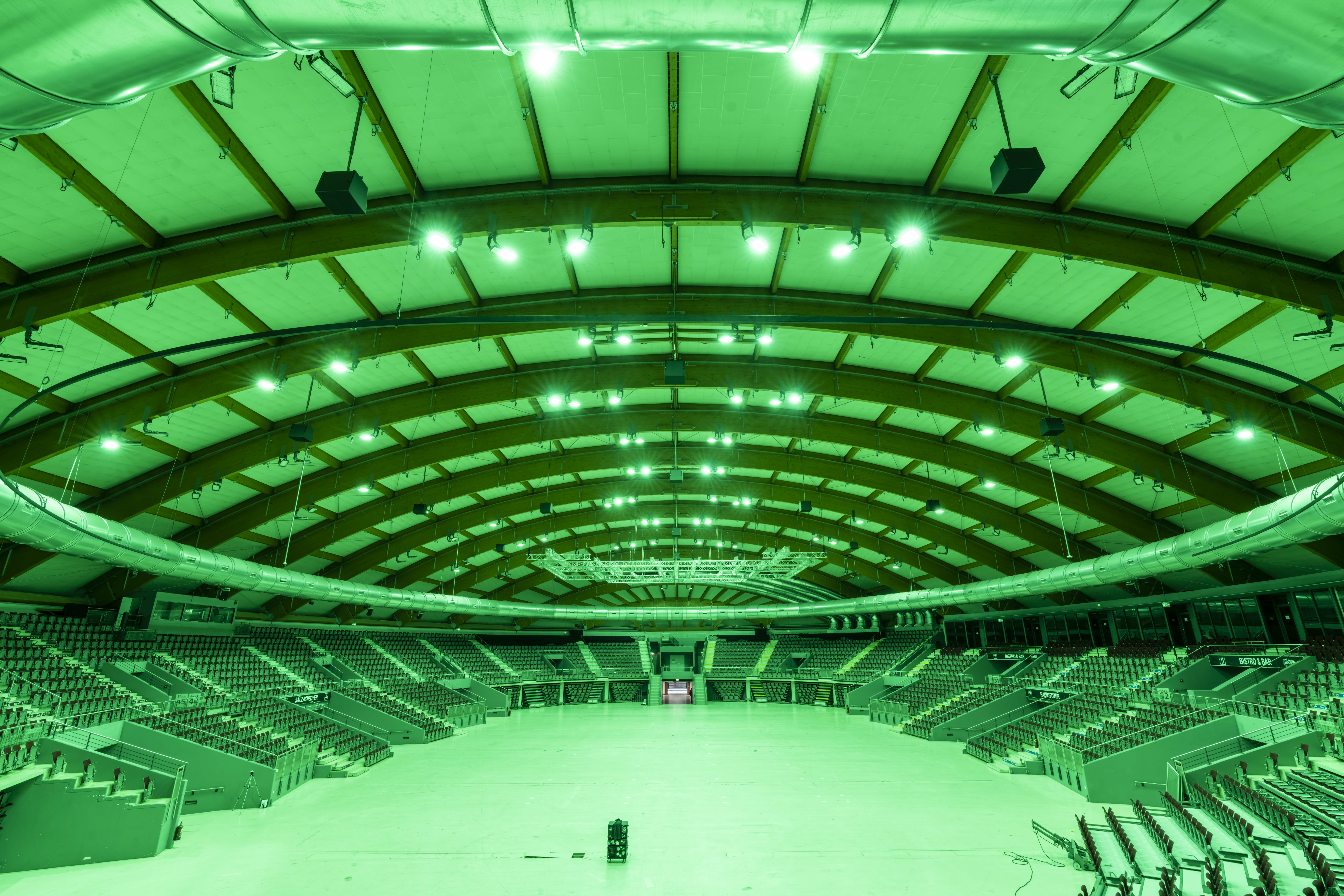 Vom Ball mit Clubbing, Dauerausstellungen im Sommer bis hin zu Sport-Events mit angeschlossener Aufstellung oder Kultur- und Kunstveranstaltungen – die salzburgarena bietet einen Veranstaltungsort für verschiedenste Anlässe. Dies ist auch eine wahre Herausforderung für die Beleuchtung, die sich flexibel auf die verschiedenen Gegebenheiten anpassen muss. Mit dem SIRIUS von SITECO werden hierfür beste Bedingungen geschaffen. Die verbaute RGB+W Funktion bringt dabei das Beste aus zwei Welten zusammen. Intensive farbige Showbeleuchtung voller Emotion und blendfreies Licht nach Norm EN12193 für sportliche Aktivitäten in 8K-TV-Qualität.