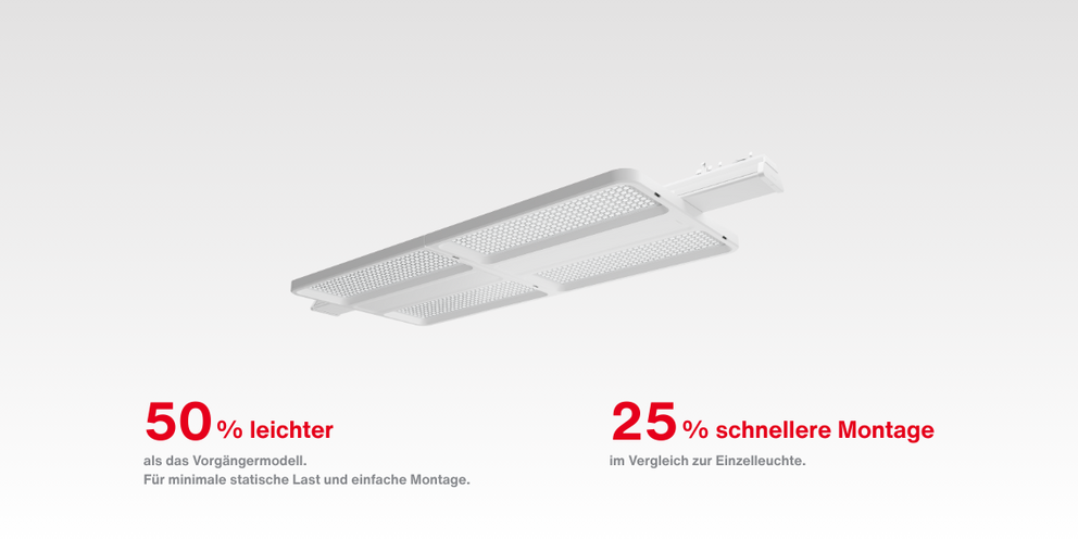 Lumenpakete von 10–70 klm, eng- und breitstrahlende Linsenoptiken.