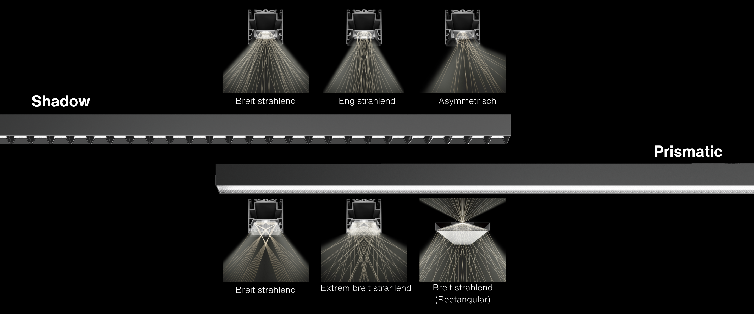 Die Shadow-Optik ermöglicht gezielte Lichtstreuung und -verteilung, auch bei kleinen Abstrahlwinkeln. So entsteht höchste Flexibilität von eng über breit bis asymmetrisch strahlend – für freie Platzierung und präzises Licht aus jedem Winkel.
