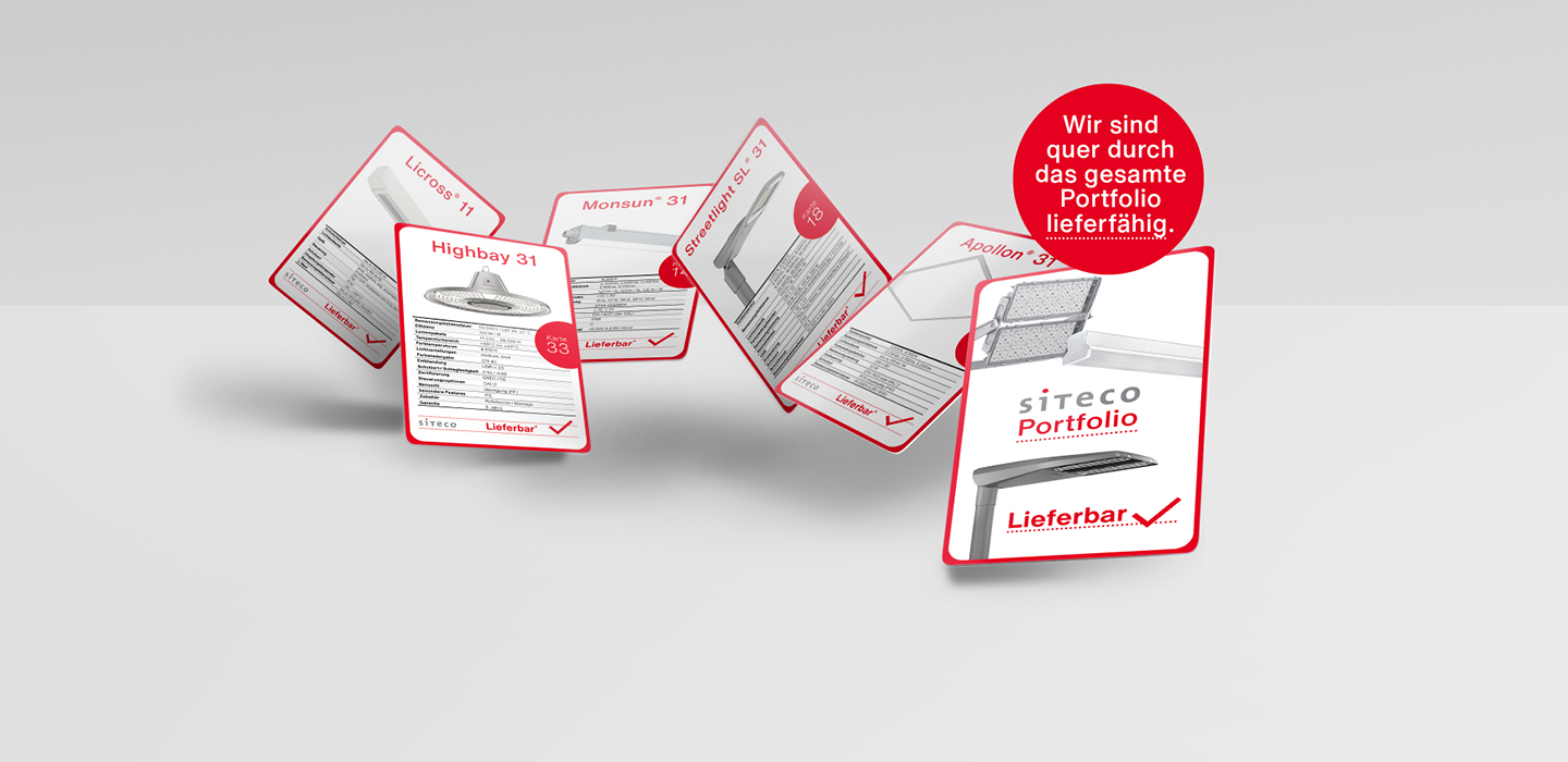 Und da sticht SITECO. Denn unsere Leuchten sind im Lager, in Oberbayern. Und können innerhalb wenigen Tagen bei Ihnen sein.