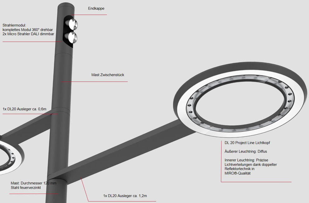 Präzise Licht­verteilungen dank doppelter Reflektortechnik in MIRO®-Qualität für unterschiedliche Straßen- und Platzsituationen. Optimale Entblendung ermöglicht sogar blendfreien Blick in die Leuchte.