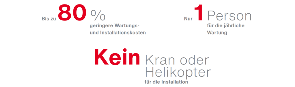 - Gefahrloses Warten und Instandhalten der Anlage: Bodennahes Arbeiten möglich ohne Hubsteiger-Einsatz