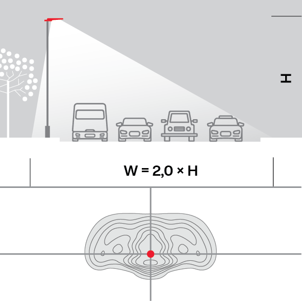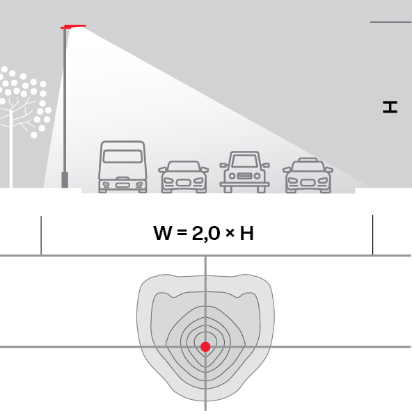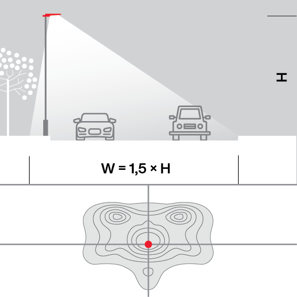 Lichtverteilungen für normale und (sehr) breite Straßen