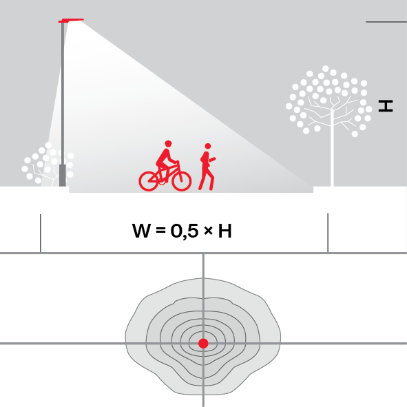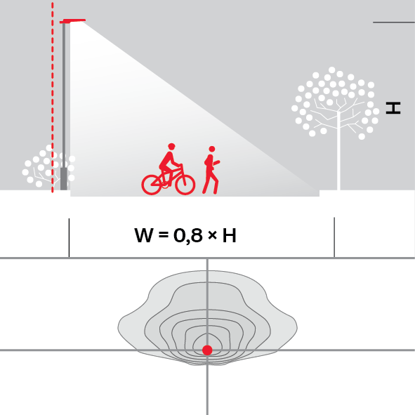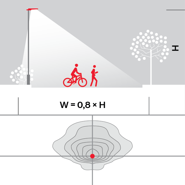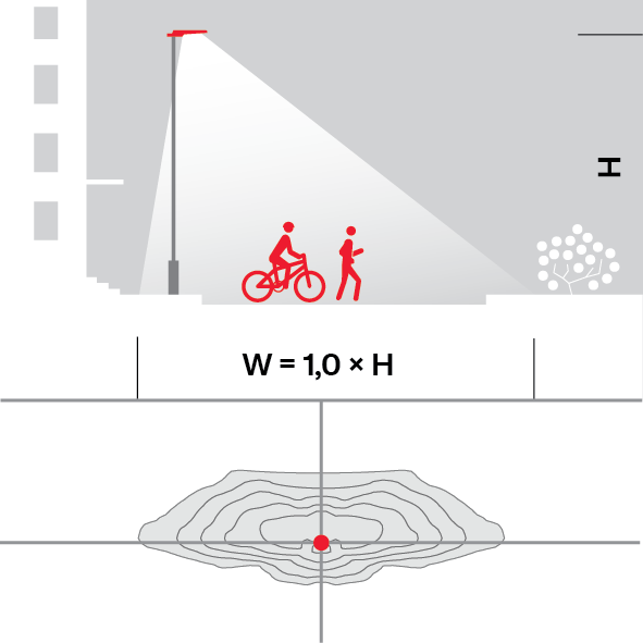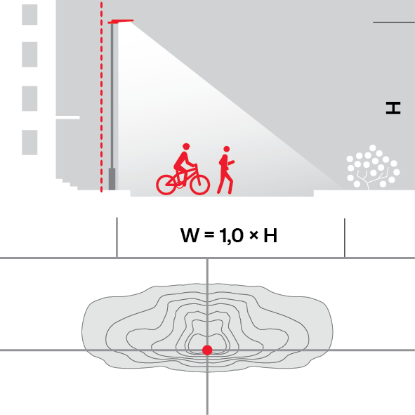 Lichtverteilungen für (sehr) schmale Straßen, (Rad-) Wege