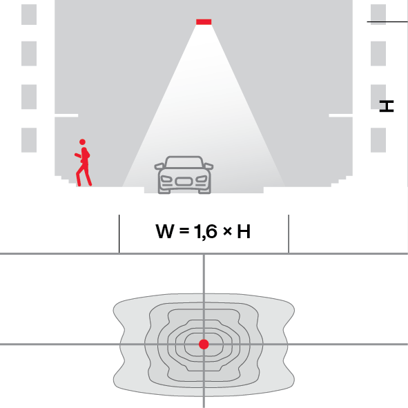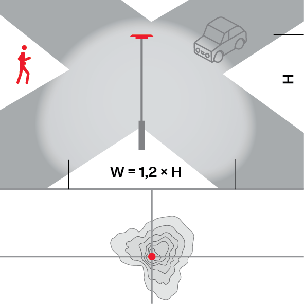 Für Kreuzungsbereiche; asymmetrisch breit strahlend