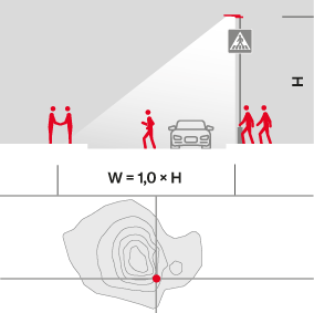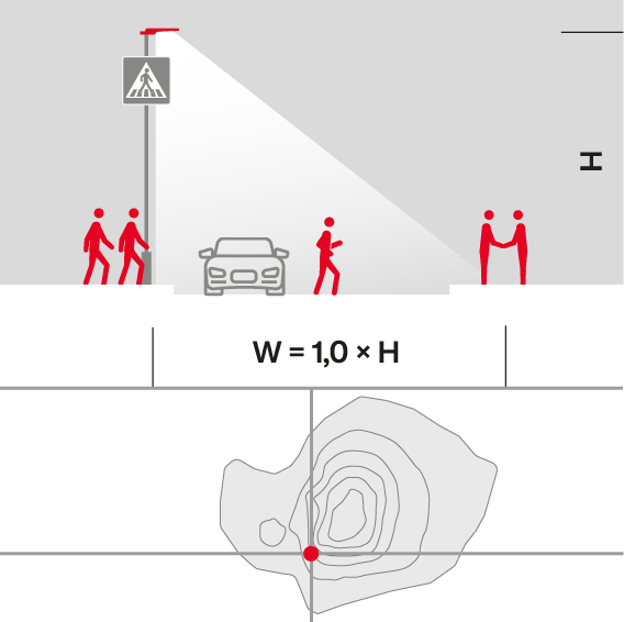 Für Fußgängerüberwege; asymmetrisch rechts breit strahlend