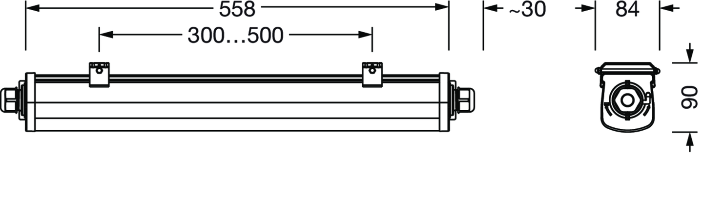 LED, EVG, mit Durchverdrahtung 3x 2,5mm² + 3x 1,5mm², Diffusor, Anbau, L= 558mm