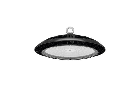 Highbay 42-S, Hallenleuchte, primäre Lichtlenkung mit Linse, aus PC, primäre lichttechn. Abdeckung: Abdeckscheibe, aus PC, klar, Lichtaustritt: direkt strahlend, primäre Lichtcharakteristik: rotations-symmetrisch, Montageart: abgehängte Montage, Anbau, LED, Bemessungslichtstrom: 19.200lm, Lichtausbeute: 160lm/W, Lichtfarbe: 840, Farbtemperatur: 4000K, Vorschaltgerät: EIN/AUS, mit Leitung, 3x 1,0mm², freie Aderenden, Netzanschluss: 230V, AC, 50Hz, Leitungslänge: 1,5m, Bemessungsleistung: 120W, Gehäuse, rotations-symmetrisch, aus Aluminium-Druckguss, schwarz, inkl. leuchtenseitigem Haken, Durchmesser: 275mm, Höhe: 117mm, Schutzart (gesamt): IP65, Schutzklasse (gesamt): SK I (Schutzerdung), Prüfzeichen: CE, UKCA, Schutzzeichen: D, Schlagfestigkeit: IK08, zul. Betriebsumgebungstemperatur: -20..+40°C, entspricht den Anforderungen von IFS (International Featured Standards) für Sicherheit und Qualität in der Lebensmittelindustrie, Verpackungseinheit: 1 Stück