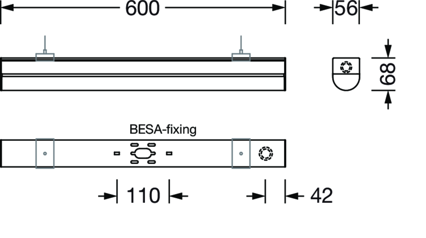 Ecopack 31, Diffusorleuchte, primäre lichttechn. Abdeckung: Abdeckung, aus PC, satiniert, Lichtaustritt: direkt strahlend, primäre Lichtcharakteristik: symmetrisch, Montageart: Anbau, LED, Bemessungslichtstrom: 2.600lm, Lichtausbeute: 130lm/W, Lichtfarbe: 830/840/850, Farbtemperatur: 3000/4000/5000K, Vorschaltgerät: EIN/AUS Multilumen, mit Klemme, 3polig, Netzanschluss: 220..240V, AC, 50/60Hz, Bemessungsleistung: 20W, Gehäuse, aus Aluminium, verkehrsweiß (RAL 9016), Länge: 600mm, Breite: 56mm, Höhe: 68mm, Stirnwand, aus PC, weiß, Schutzart (gesamt): IP20, Schutzklasse (gesamt): SK I (Schutzerdung), Prüfzeichen: CE, Schlagfestigkeit: IK06, zul. Betriebsumgebungstemperatur: -20..+40°C, Verpackungseinheit: 1 Stück