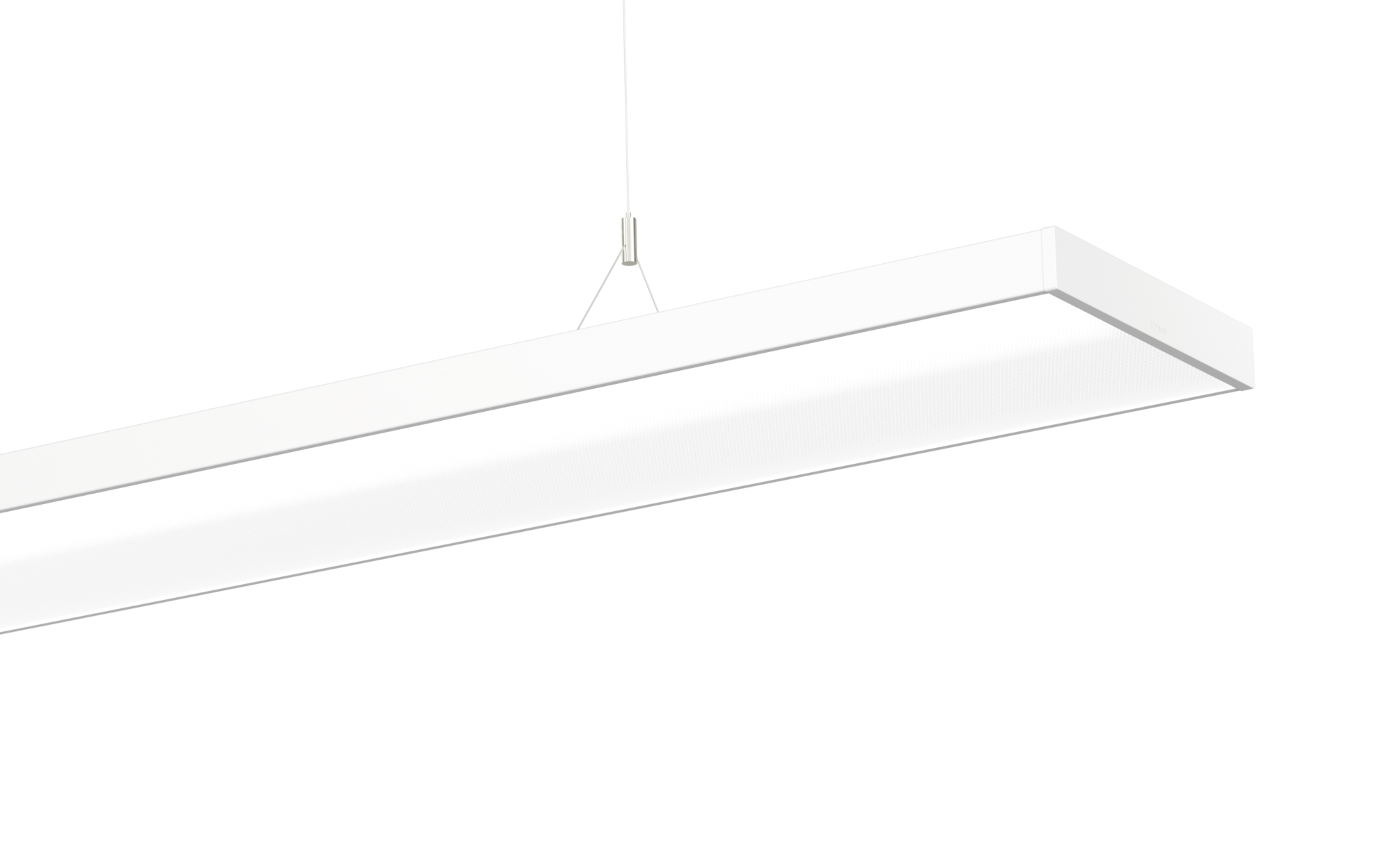 Silica 21 Rectangular Prismatic X, Office-Leuchte, primäre lichttechn. Abdeckung: Prismenscheibe, aus PMMA, BAP65 (L= 3000cd/m²), Lichtaustritt: direkt/indirekt strahlend, primäre Lichtcharakteristik: symmetrisch, Montageart: abgehängte Montage, LED, Bemessungslichtstrom: 6.440lm, Lichtausbeute: 136lm/W, Lichtfarbe: 940, Farbtemperatur: 4000K, Vorschaltgerät: DALI 2, mit Klemme, 3+2polig, max. 2,5mm², Netzanschluss: 220..240V, AC, 50/60Hz, Bemessungsleistung: 47,4W, Leuchtengehäuse, aus Stahlblech, verkehrsweiß (RAL 9016), Länge: 1.200mm, Breite: 225mm, Höhe: 35mm, Ausstattung: Standard, Schutzart (gesamt): IP40, Schutzklasse (gesamt): SK I (Schutzerdung), Prüfzeichen: CE, Schlagfestigkeit: IK03, zul. Betriebsumgebungstemperatur: 0..+35°C, Norm: EN 50419, Verpackungseinheit: 1 Stück