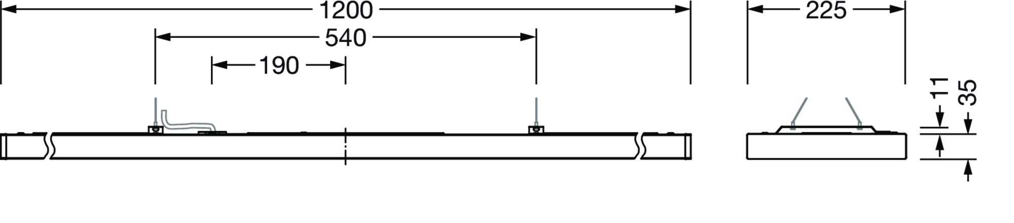Office-Leuchte, verkehrsweiß (RAL 9016), DALI 2, 6440lm, 940, 1200x225mm, Anschluss: Klemme
