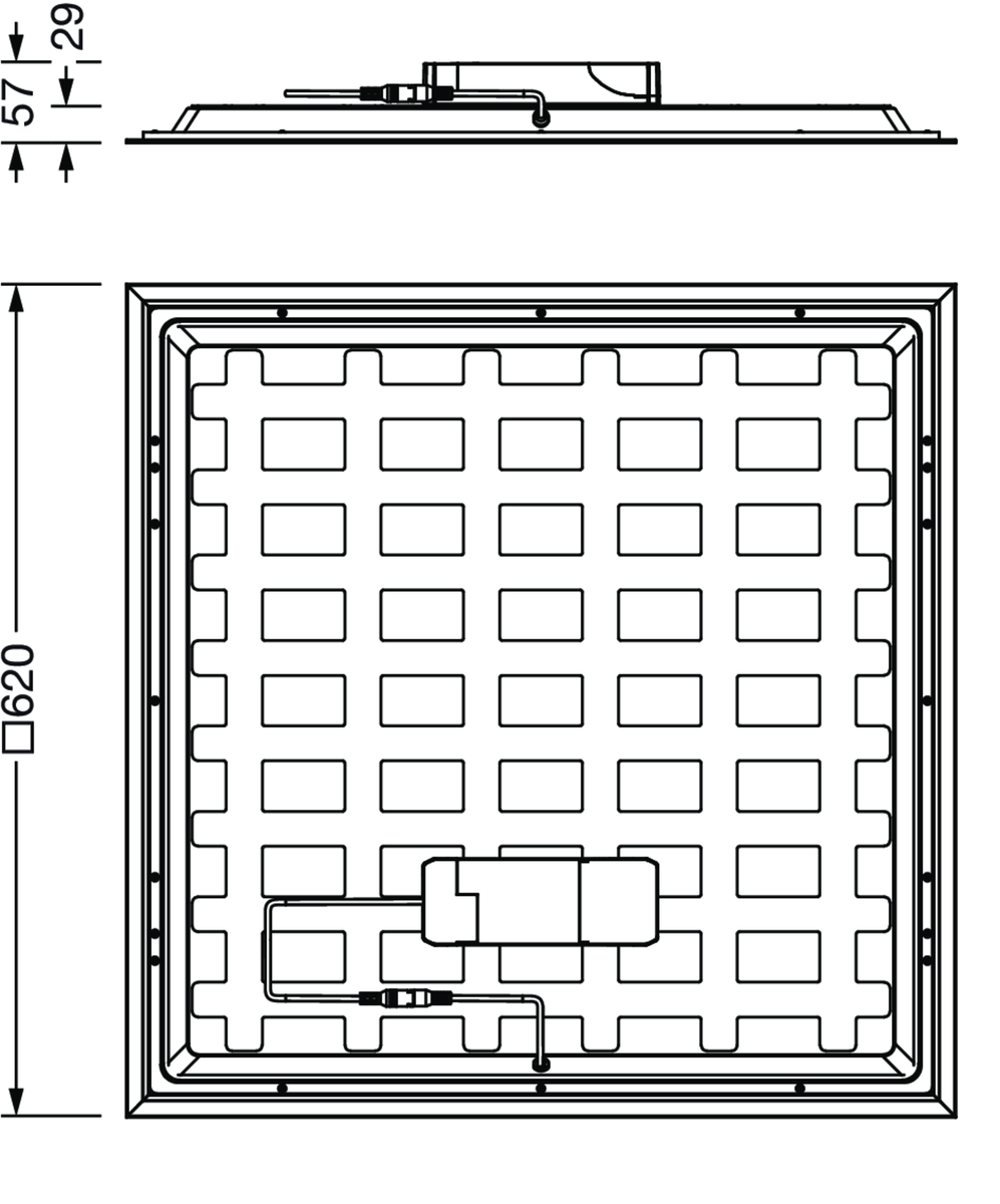 Apollon 41, Office-Leuchte, primäre lichttechn. Abdeckung: Prismenscheibe, aus PS, Lichtaustritt: direkt strahlend, primäre Lichtcharakteristik: symmetrisch, Montageart: Einlegemontage, LED, Bemessungslichtstrom: 3.500lm, Lichtausbeute: 123lm/W, Lichtfarbe: 830/840, Farbtemperatur: 3000/4000K, Vorschaltgerät: DALI 2, mit Klemme, 5polig, Netzanschluss: 220..240V, AC/DC, 0/50..60Hz, geeignet für Einzelbatterie-Notlichtelement 58DB00B013A mit integrierter Selbsttestfunktion gemäß EN 60598-2-22, Gehäuse, aus Aluminium-Profil, verkehrsweiß (RAL 9016), Modul: M625, Länge: 620mm, Breite: 620mm, Höhe: 60mm, Einbautiefe: 180mm, Gehäuseoberseite, aus Stahlblech, Schutzart (gesamt): IP20, Schutzart (Lampenraum, raumseitig): IP40, Schutzklasse (gesamt): SK II (Schutzisoliert), Prüfzeichen: CE, ENEC, Schlagfestigkeit: IK03, zul. Betriebsumgebungstemperatur: -25..+40°C, Verpackungseinheit: 1 Stück