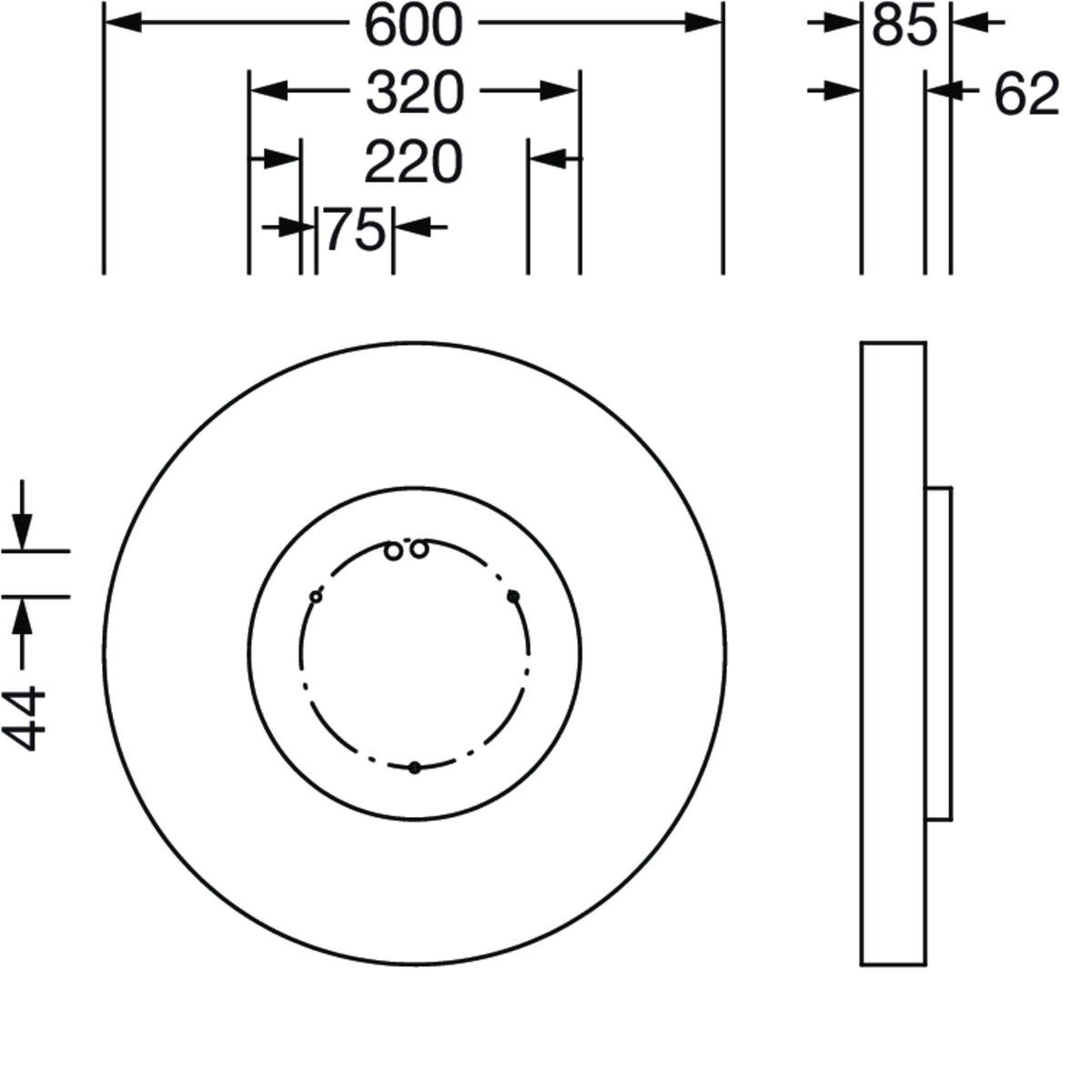 Round 21 M, Wand- und Deckenleuchte, primäre lichttechn. Abdeckung: Abdeckung, aus PMMA, opal, Lichtaustritt: direkt strahlend, primäre Lichtcharakteristik: symmetrisch, Montageart: Anbau, abgehängte Montage, LED, Bemessungslichtstrom: 7.810lm, Lichtausbeute: 142lm/W, Lichtfarbe: 840, Farbtemperatur: 4000K, Vorschaltgerät: DALI 2, mit Klemme, 5polig, Netzanschluss: 230V, AC, 50/60Hz, Bemessungsleistung: 55W, Gehäuse, aus Aluminium, lackiert, silber, Durchmesser: 600mm, Höhe: 62mm, Schutzart (gesamt): IP40, Schutzklasse (gesamt): SK I (Schutzerdung), Prüfzeichen: CE, Schlagfestigkeit: IK04, zul. Betriebsumgebungstemperatur: -10..+35°C, Verpackungseinheit: 1 Stück