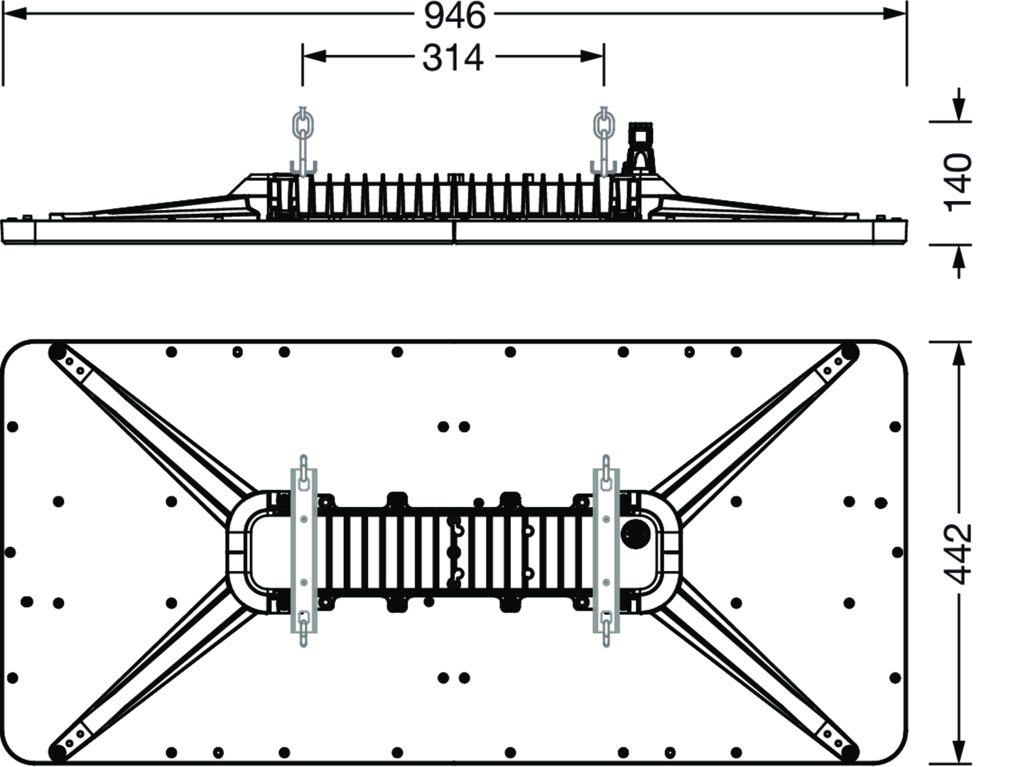 Hallenleuchte Highbay 21 maxi; direkt symmetrisch breit strahlend, Lichtlenkung mit Linse aus PMMA; UGR ≤ 22 (X = 4H | Y = 8H | S = 0,25H | Reflexionsgrade 70/50/20); Lichtstrom: 28.000lm; Lichtfarbe: 840, Farbtemperatur: 4000K, MacAdam ≤ 3 SDCM (initial), Farbwiedergabe: CRI > 80; Lichtausbeute: 194,4lm/W; Bemessungslebensdauer: 75.000h (L80) bei UT= ta max; Ansteuerung: DALI 2; Leuchtenanschluss: Klemme, 5polig, max. 2,5mm² (Leitungseinführung für eine Leitung, Ø 8, 5..16mm); Netzanschluss: 230..240V, AC/DC 0/50..60Hz; Anschlussleistung: 144W; Schutzart (gesamt): IP40; Schutzklasse (gesamt): SK I (Schutzerdung); Schutzzeichen: D; Schlagfestigkeit: IK08; Prüfzeichen: CE, ENEC, VDE, UKCA; Leuchte für Zentralbatterieanlagen gemäß EN 60598-2-22, interne Verdrahtung halogenfrei; Leuchte LABS-Konformität geprüft gemäß VDMA 24364:2018-05; ballwurfsicher nur bei Verwendung mit dem entsprechenden Montagezubehör; Für den Einsatz in der Lebensmittelindustrie nach den Vorgaben von IFS-Food, HACCP und/oder BRC geeignet; Gehäuserahmen aus Hochleistungskunststoff PA6, verkehrsweiß matt (RAL 9016); Abdeckung aus PMMA; Abmessung (LxBxH): 946 x 442 x 72mm; zul. Betriebsumgebungstemperatur: -40..+65°C (bei Deckenanbau Reduzierung der zulässigen maximalen Umgebungstemperatur um 5°C); Verpackungseinheit: 1 Stück; (Lieferung ohne Zubehör; Montagezubehör bitte zusätzlich bestellen)