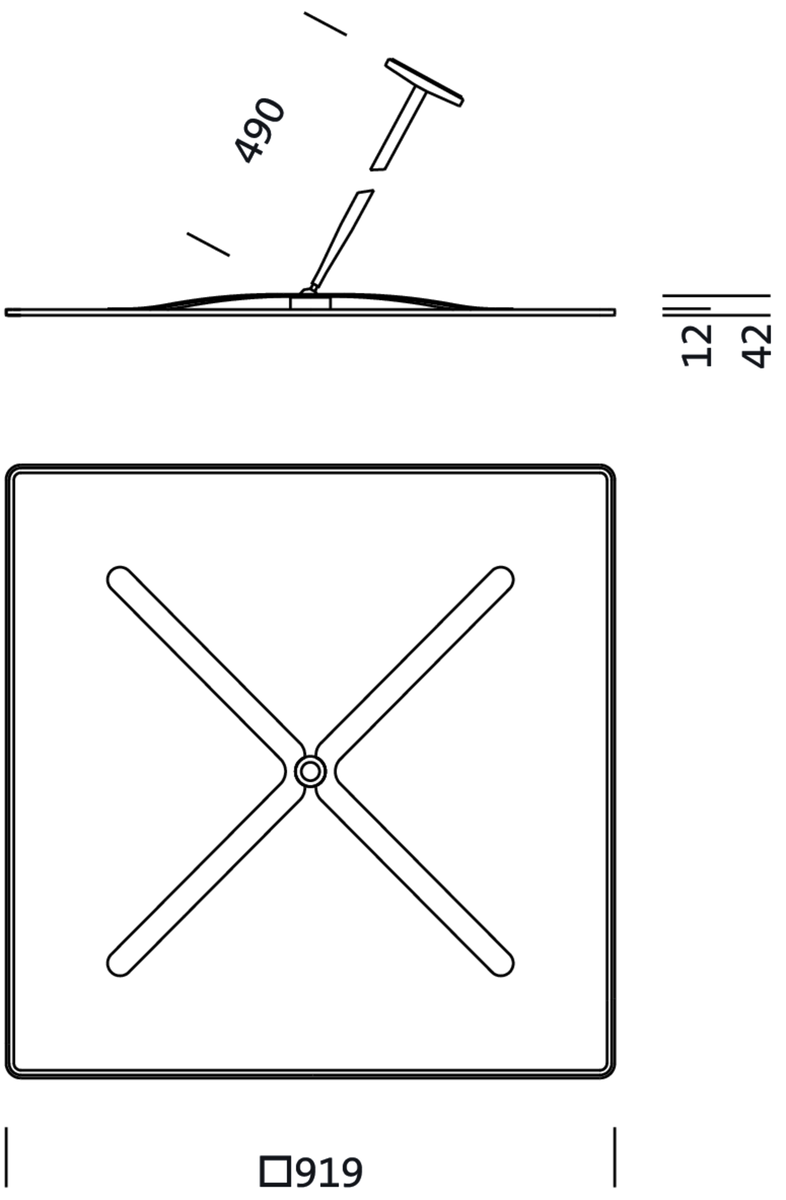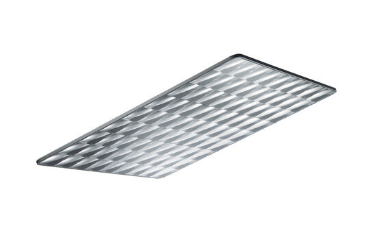 Spiegel-Werfer-Reflektor, für SITECO Mirrortec Indoor, Kugelgelenk-Pendelabhängung, Gehäuse, quadratisch, aus Aluminium, lackiert, weißaluminium (RAL 9006), Fresnel Reflektor 100, aus PMMA, Alu bedampft, hochglänzend, Lichtpunkt-Zerlegung, Fresnelstruktur, Länge: 900 mm, Breite: 900 mm