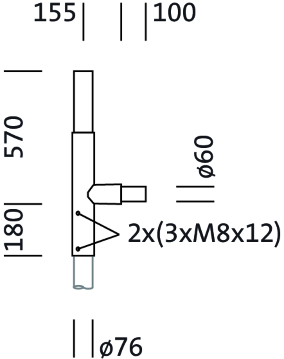 Mastausleger, Ausleger, aus Stahl, verzinkt und lackiert, SITECO eisenglimmer (DB 702S), 1armig, abgesetzt, Tragarm kurz, Zopfmaß: 76mm (Aufsatz), Auslegermaß: 210mm, Verpackungseinheit: 1 Stück