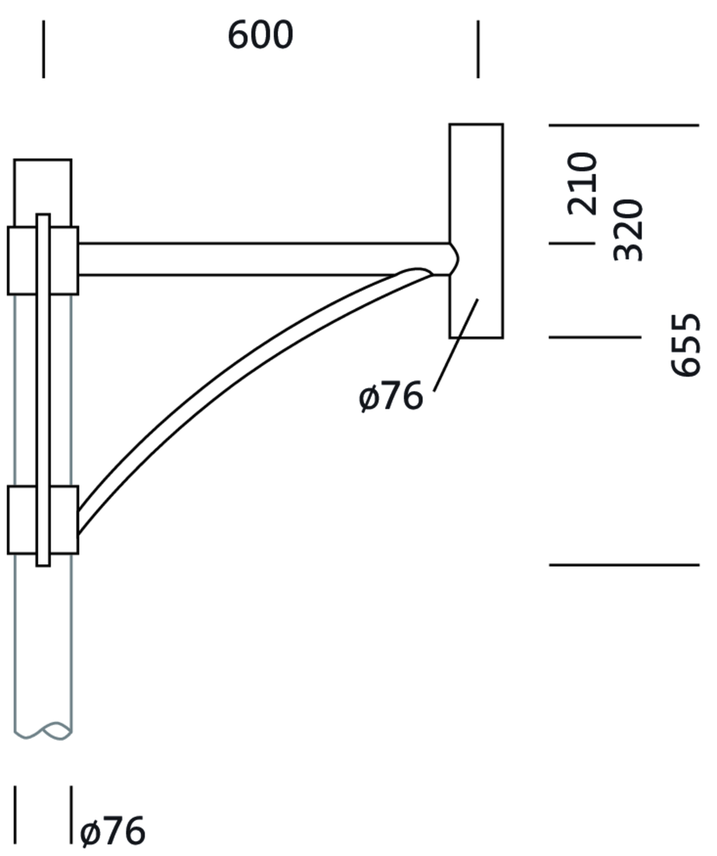Schwinge, Mastausleger, Designausleger, aus Stahl, verzinkt und lackiert, SITECO eisenglimmer (DB 702S), 1armig, mit integriertem Mastabschluss, Zopfmaß: 76mm (Aufsatz), Auslegermaß: 600mm, Verpackungs­einheit: 1 Stück