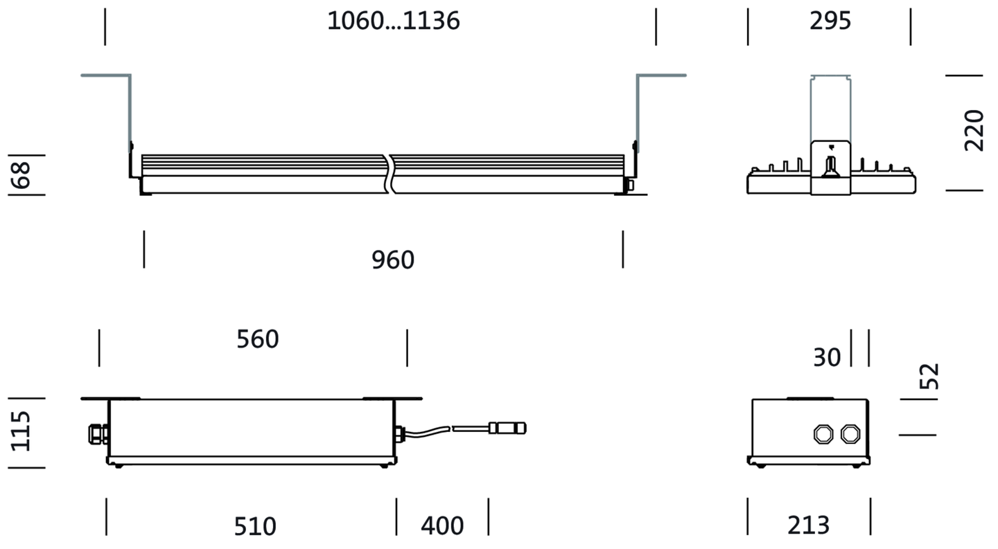 TL 33S midi, Tunnelleuchte, primäre lichttechn. Abdeckung: Abdeckscheibe, aus Einscheiben-Sicherheitsglas, entspiegelt, klar, Lichtaustritt: direkt strahlend, primäre Lichtcharakteristik: symmetrisch, Montageart: Anbau, vorschaltgeräteseitiger Anschluss,LED, High Power LED, Bemessungslichtstrom: 46.300lm, Lichtausbeute: 161lm/W, Lichtfarbe: 750, Farbtemperatur: 5000K, Vorschaltgerät: DALI, mit Systemverbindung, Netzanschluss: 220..240V, AC, 50/60Hz, Anschlussleitung Stecker stirnseitig im Leuchtengehäuse integriert, Bemessungsleistung: 287W, netzseitiger Anschluss,7polig, max. 10mm² (5G+2), mit Klemme, Leuchtengehäuse, aus Edelstahl 1.4404 (AISI316), gebeizt und passiviert, Länge: 960mm, Breite: 295mm, Höhe: 68mm, Kühlkörper, aus Al Mg 2, E-Box, aus Edelstahl 1.4404 (AISI316), gebeizt und passiviert, Länge: 510mm, Breite: 213mm, Höhe: 115mm, Schutzart (gesamt): IP66, Schutzklasse (gesamt): SK I (Schutzerdung), Prüfzeichen: CE, Schlagfestigkeit: IK09, zul. Betriebsumgebungstemperatur: -25..+45°C, Verpackungseinheit: 1 Stück