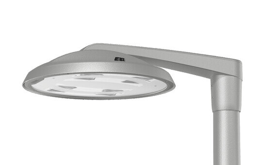 DL 50 mini, Mastleuchte, primäre Lichtlenkung mit 3-Zonen Facetten-Reflektor, aus Kunststoff, Silber beschichtet, hochglänzend, primäre lichttechn. Abdeckung: Abdeckung, aus Einscheiben-Sicherheitsglas, teilweise Bedruckung im Siebdruckverfahren, klar, Lichtverteilung: ST1.2a, Lichtaustritt: direkt strahlend, primäre Lichtcharakteristik: asymmetrisch, Montageart: Aufsatz, Ansatz, LED, High Power LED, Bemessungslichtstrom: 6.040lm, Lichtausbeute: 113lm/W, Lichtfarbe: 830, Farbtemperatur: 3000K, Vorschaltgerät: D4i, Steuerung: Überhitzungsschutz, digitale Kommunikationsschnittstelle, zeitabhängige Lichtstromsteuerung, flexible Lichtstromparametrierung, Netzanschluss: 220..240V, AC, 50/60Hz, Anschlussleitung vormontiert, Leitungslänge: 8,5m, Beginn der Lebensdauer: 53W, Ende der Lebensdauer: 55W, Leuchtengehäuse, aus Aluminium-Druckguss, pulverbeschichtet, SITECO eisenglimmer (DB 702S), Neigung einstellbar: 0°, 5°, 10° (Aufsatz) | 0°, -5°, -10°, -15° (Ansatz), Mastaufsatzelement oder Mastansatzelement bitte separat bestellen, Durchmesser: 500mm, Höhe: 115mm, bei Mastaufsatz: für Zopfmaß d x l = 76 x 100mm; mit Reduzierstück (optionales Zubehör) 60 x 100mm | bei Mastansatz: für Zopfmaß d x l = 60 x 100mm; mit Reduzierstück (optionales Zubehör) 42 x 100mm, Lichtpunkthöhe: 4..6m, Smart Interface oben, Schutzart (gesamt): IP66, Schutzklasse (gesamt): SK II (Schutzisoliert), Prüfzeichen: CE, Schlagfestigkeit: IK08, zul. Betriebsumgebungstemperatur: -25..+40°C, normgerechte Platz- und Straßenbeleuchtung, Verpackungseinheit: 1 Stück