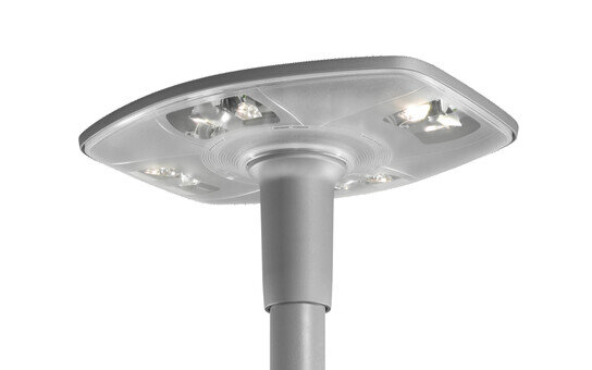 DL 30 LED, Mastleuchte, primäre Lichtlenkung mit 3-Zonen Facetten-Reflektor, aus Kunststoff, Silber beschichtet, hochglänzend, primäre lichttechn. Abdeckung: Abdeckung, aus PMMA, strukturiert, klar, Lichtverteilung: C120002, Abstrahlwinkel primär: breit strahlend, Lichtaustritt: direkt strahlend, primäre Lichtcharakteristik: symmetrisch, Montageart: Aufsatz, Leuchtmittel: LED, Bemessungswerte: 6.990lm | 52W | 134,4lm/W (Beginn Lebensdauer); Ende Lebensdauer: 6.990lm | 54W; bei 50% Lichtstrom: 3.494lm | 24,1W | 145lm/W, Farbtemperatur: 4000K, Farbwiedergabe: CRI > 70, Lichtfarbe: 740, Lichteinstellung 1 (weitere Lichteinstellungen möglich): 100% | 6.990lm | 52W | 134,4lm/W | 4.000K (Beginn Lebensdauer); Ende Lebensdauer: 54W, Vorschaltgerät: Plus, Steuerung: flexible Lichtstromparametrierung, zeitabhängige Lichtstromsteuerung, Konstantlichtstrom-Steuerung, digitale Kommunikationsschnittstelle, Leistungsreduzierung, Netzanschluss: 230..240V, AC, 50/60Hz, Stoßspannungsfestigkeit: 6kV 1,2/50µs, Leuchtengehäuse, aus Aluminium-Druckguss, pulverbeschichtet, SITECO eisenglimmer (DB 702S), Länge: 600mm, Breite: 510mm, Höhe: 290mm, für Zopfmaß: d x l = 76 x 100mm (Aufsatz) | mit Reduzierstück (optionales Zubehör) 60 x 100mm, Schutzart (gesamt): IP66, Schutzklasse (gesamt): SK II (Schutzisoliert), Prüfzeichen: CE, ENEC, VDE, Schlagfestigkeit: IK08, zul. Betriebsumgebungstemperatur: -25..+25°C, normgerechte Platz- und Straßenbeleuchtung, Verpackungseinheit: 1 Stück