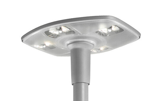DL 30 LED, Mastleuchte, primäre Lichtlenkung mit 3-Zonen Facetten-Reflektor, aus Kunststoff, Alu bedampft, hochglänzend, primäre lichttechn. Abdeckung: Abdeckung, aus PMMA, strukturiert, klar, Lichtverteilung: P100004, Abstrahlwinkel primär: extrem breit strahlend, Lichtaustritt: direkt strahlend, primäre Lichtcharakteristik: asymmetrisch, Montageart: Aufsatz, Leuchtmittel: LED, Bemessungswerte: 2.720lm | 20W | 136lm/W (Beginn Lebensdauer); Ende Lebensdauer: 2.720lm | 20,2W; bei 50% Lichtstrom: 1.360lm | 10,5W | 129,5lm/W, Farbtemperatur: 4000K, Farbwiedergabe: CRI > 70, Lichtfarbe: 740, Lichteinstellung 1 (weitere Lichteinstellungen möglich): 100% | 2.720lm | 20W | 136lm/W | 4.000K (Beginn Lebensdauer); Ende Lebensdauer: 20,2W, Vorschaltgerät: Plus, Steuerung: flexible Lichtstromparametrierung, zeitabhängige Lichtstromsteuerung, Konstantlichtstrom-Steuerung, digitale Kommunikationsschnittstelle, Leistungsreduzierung, Netzanschluss: 230..240V, AC, 50/60Hz, Stoßspannungsfestigkeit: 6kV 1,2/50µs, Leuchtengehäuse, aus Aluminium-Druckguss, pulverbeschichtet, SITECO eisenglimmer (DB 702S), Länge: 600mm, Breite: 510mm, Höhe: 290mm, für Zopfmaß: d x l = 76 x 100mm (Aufsatz) | mit Reduzierstück (optionales Zubehör) 60 x 100mm, Schutzart (gesamt): IP66, Schutzklasse (gesamt): SK II (Schutzisoliert), Prüfzeichen: CE, ENEC, VDE, Schlagfestigkeit: IK08, zul. Betriebsumgebungstemperatur: -25..+40°C, normgerechte Platz- und Straßenbeleuchtung, Verpackungseinheit: 1 Stück