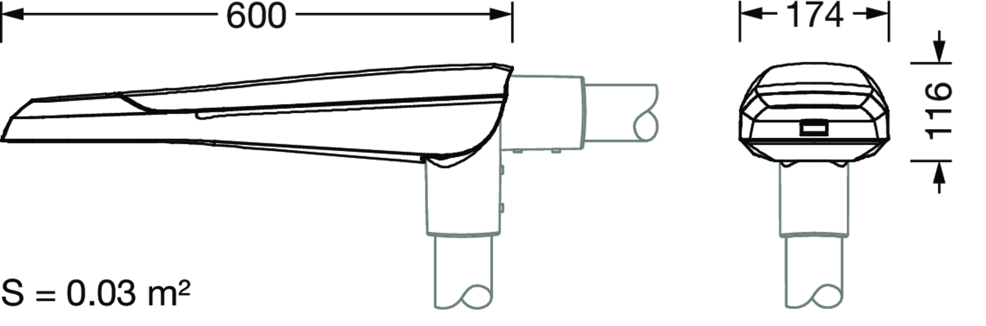 Streetlight SL 11 iQ micro, mast luminaire, primary light control with 3 zone facetted reflector, of plastic, silver coated, highly specular, primary optical cover: cover, of PMMA, transparent, light distribution: S050001, primary beam angle: wide distribution, light emission: direct distribution, primary light characteristic: asymmetric, installation type: post-top, side-entry, lamps: LED, rated values: 3.820lm | 25,6W | 149,2lm/W (begin service life); end service life: 3.820lm | 26,3W; at 50% lumin. flux: 1.910lm | 12,4W | 154lm/W, colour temperature: 4000K, colour rendering: CRI > 70, light colour: 740, light setting 1 (further light settings possible): 100% | 3.820lm | 25,6W | 149,2lm/W | 4.000K (begin service life); end service life: 26,3W, control gear: iQ Street-Remote, control: Street-Remote, optimised constant luminous flux control (CLO 2.0), Desk-Remote (wireless, voltage-free reading and setting of iQ features in the workshop via application-optimized NFC function/RFID function), Light-Fading, Smart-Wire, Night-Set, Lumen-Switch, Temp-Guard, Auto-Match, mains connection: 220..240V, AC, 50/60Hz, surge voltage resistance: surge voltage resistance: 10kV (common mode); 6kV (differential mode), connection cable: pre-assembled, cable length: 6,5m, wiring characteristics: H07RN-F, 3X 1,5mm², configuration: L/N/LST, luminaire housing, of diecast aluminium, powder-coated, SITECO metallic grey (DB 702S), please order mast flange separately, inclination adjustable without tools: 0°, 5°, 10°, 15° (post-top) | 0°, -5°, -10°, -15° (side-entry), sealing non-destructively replaceable, multi-level sealing system, length: 600mm, width: 174mm, height: 116mm, mast flange for spigot size: 42mm (side-entry): 5XC10008XM4, 60/48mm (side-entry/post-top): 5XC10108XM2, 76/60mm (side-entry/post-top): 5XC10108XM1, equipment: Power, protection rating (complete): IP66, insulation class (complete): insulation class II (safety insulation), certification: CE, ENEC, VDE, impact resistance: IK10, permissible operating ambient temperature for outdoor applications: -25..+50°C, standard-compliant lighting for roads and squares, Environmental Product Declaration (EPD) tested and certified by an independent institute, packaging unit: 1 piece