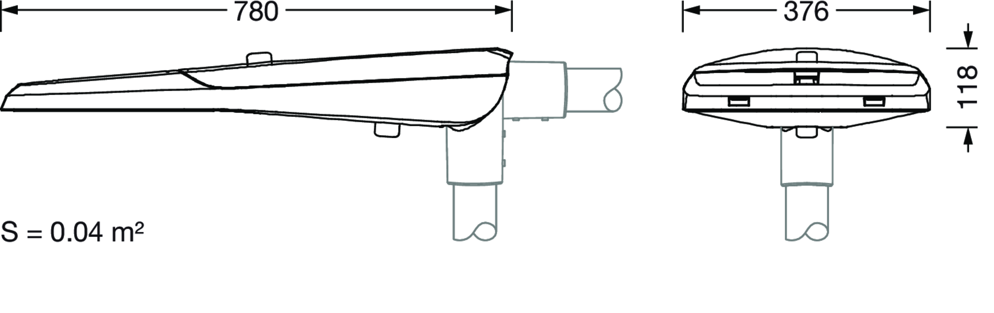 Streetlight SL 11 iQ midi, mast luminaire, primary light control with 3 zone facetted reflector, of plastic, silver coated, highly specular, primary optical cover: cover, of PMMA, transparent, light distribution: ST1.2a, light emission: direct distribution, primary light characteristic: asymmetric, installation type: post-top, side-entry, lamps: LED, High Power LED, rated values: 18.900lm | 122,6W | 154,2lm/W (begin service life); end service life: 18.900lm | 130,2W; at 50% lumin. flux: 9.450lm | 56,3W | 167,9lm/W, colour temperature: 4000K, colour rendering: CRI > 70, light colour: 740, light setting 1 begin service life: 100% | 18.900lm | 122,6W | 154,2lm/W | 4.000K, light setting 1 end service life: 130,2W, further light settings possible, control: pre-setting: logarithmic dimming characteristic, Street-Remote, Auto-Match, Temp-Guard, Lumen-Switch, Night-Set, Smart-Wire, Light-Fading, Desk-Remote (wireless, voltage-free reading and setting of iQ features in the workshop via application-optimized NFC function/RFID function), optimised constant luminous flux control (CLO 2.0), with cable H07RN-F 3x 1.5mm², mains connection: 230..240V, AC, 50/60Hz, connection cable pre-assembled, cable length: 12,5m, luminaire housing, of diecast aluminium, powder-coated, Siteco® metallic grey (DB 702S), please order mast flange separately, inclination adjustable without tools: 0°, 5°, 10°, 15° (post-top) | 0°, -5°, -10°, -15° (side-entry), sealing non-destructively replaceable, multi-level sealing system, length: 780mm, width: 376mm, height: 118mm, mast flange for spigot size: 42mm (side-entry): 5XC10008XM4, 60/48mm (side-entry/post-top): 5XC10108XM2, 76/60mm (side-entry/post-top): 5XC10108XM1, equipment: Power, Smart Interface below and above, protection rating (complete): IP66, insulation class (complete): insulation class II (safety insulation), certification: CE, ENEC, ENEC+, VDE, UKCA, impact resistance: IK10, permissible operating ambient temperature for outdoor applications: -25..+50°C, standard-compliant lighting for roads and squares, Environmental Product Declaration (EPD) tested and certified by an independent institute, packaging unit: 1 piece