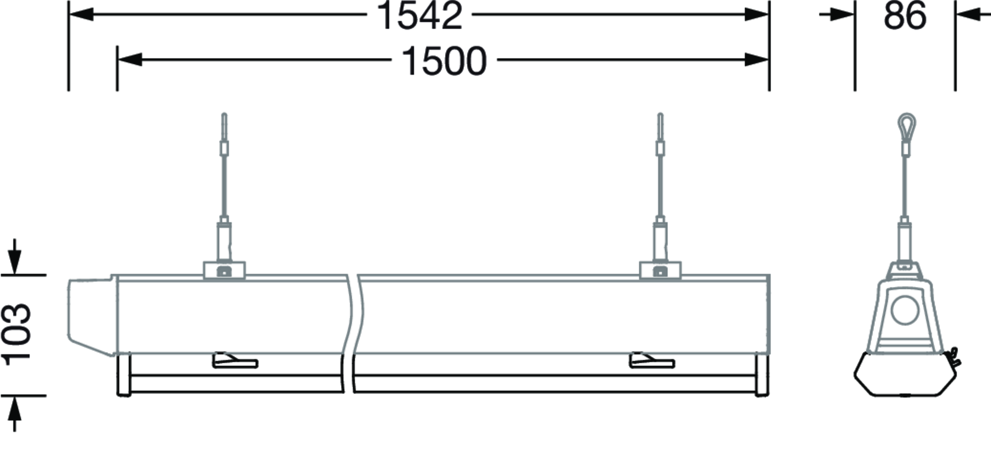 Licross® 11 Protected HO, luminaire insert, of sheet steel, galvanised, coil coated, white, length: 1.500mm, width: 90mm, height: 101mm, LED rated luminous flux: 15.820lm, light colour: 840, SDCM (Standard Deviation of Colour Matching)MacAdam ≤ 2 SDCM (initial), control gear: ON/OFF Multilumen, with plug, 3-pole, with phase selection, mains connection: 220..240V, AC, 50/60Hz, rated input power: 87W, internal wiring halogen-free, primary light control with lens, of plastic, primary optical cover: cover, of PMMA, light emission: direct distribution, primary light characteristic: symmetric, protection rating (complete): IP54, insulation class (complete): insulation class I (protective earthing), certification: CE, ENEC, VDE, UKCA, protection symbol: D if used in an environment with non-conductive dust loads with corresponding accessories, impact resistance: IK06, permissible ambient temperature for indoor applications: -35..+35°C, corresponds to IFS (International Featured Standards) requirements for safety and quality in the food industry, reducing of maximum allowable ambient temperature of 5°C with ceiling mounting, LABS conformity tested according to VDMA 24364:2018-05, packaging unit: 1 piece