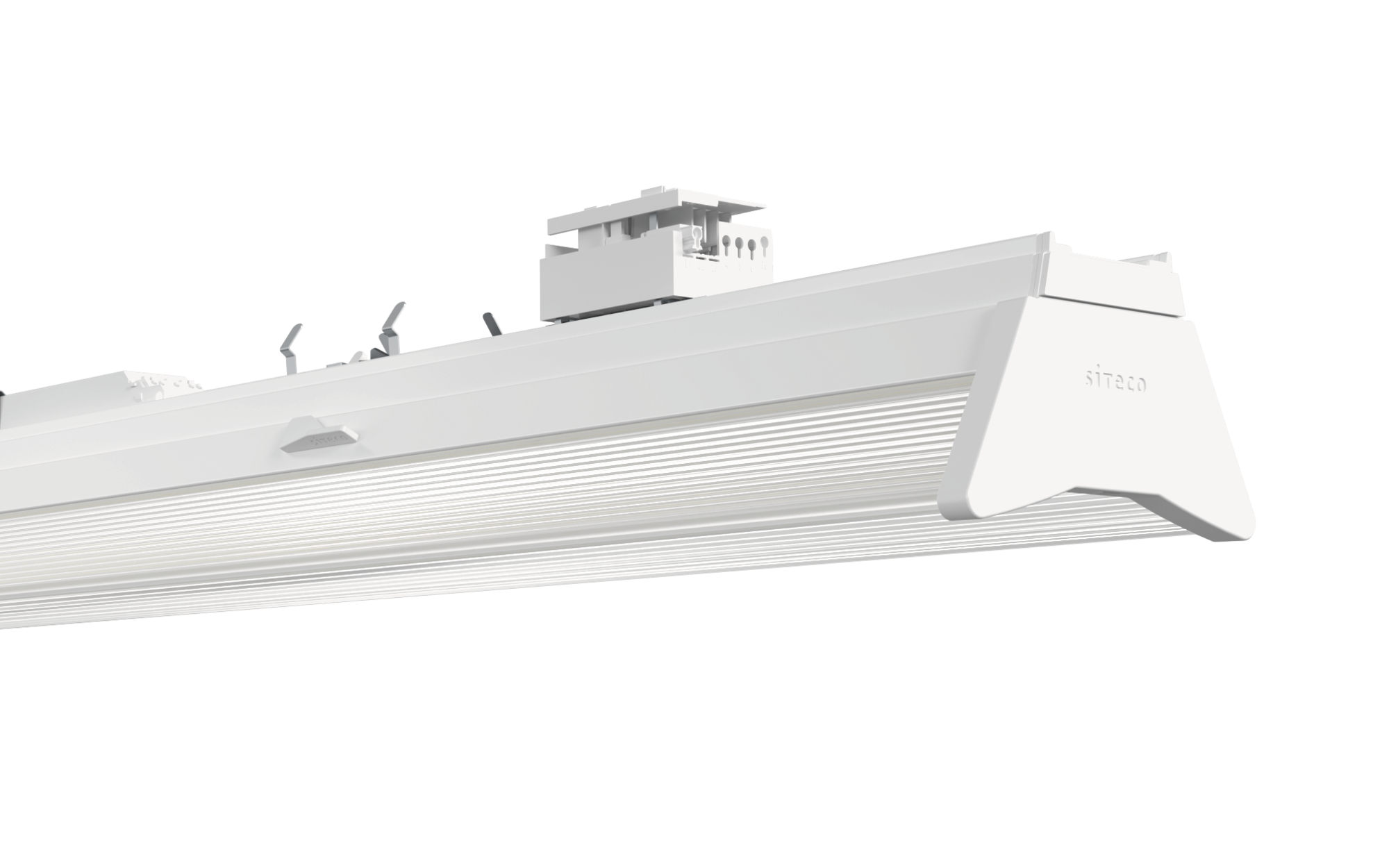 Licross® 11 Performance MO, luminaire insert, of sheet steel, galvanised, coil coated, white, length: 1.500mm, width: 120mm, height: 123mm, LED rated luminous flux: 10.160lm, light colour: 840, SDCM (Standard Deviation of Colour Matching)MacAdam ≤ 2 SDCM (initial), control gear: ON/OFF Multilumen, with plug, 3-pole, with phase selection, mains connection: 220..240V, AC, 50/60Hz, rated input power: 55W, internal wiring halogen-free, primary light control with lens, of plastic, primary optical cover: cover, of PMMA, light emission: direct/indirect distribution, primary light characteristic: symmetric, protection rating (complete): IP54, insulation class (complete): insulation class I (protective earthing), certification: CE, ENEC, VDE, UKCA, protection symbol: D if used in an environment with non-conductive dust loads with corresponding accessories, impact resistance: IK06, permissible ambient temperature for indoor applications: -35..+40°C, corresponds to IFS (International Featured Standards) requirements for safety and quality in the food industry, reducing of maximum allowable ambient temperature of 5°C with ceiling mounting, LABS conformity tested according to VDMA 24364:2018-05, packaging unit: 1 piece