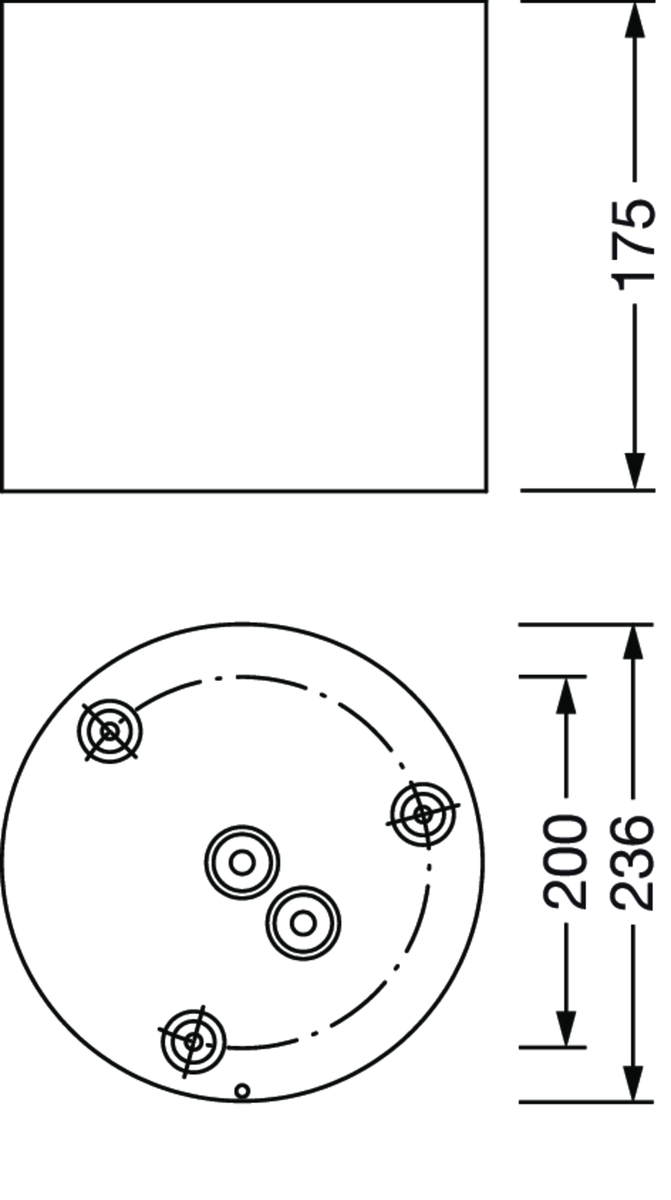 Aluminium-Druckguss, pulver­beschichtet, tiefschwarz (RAL 9005), rund