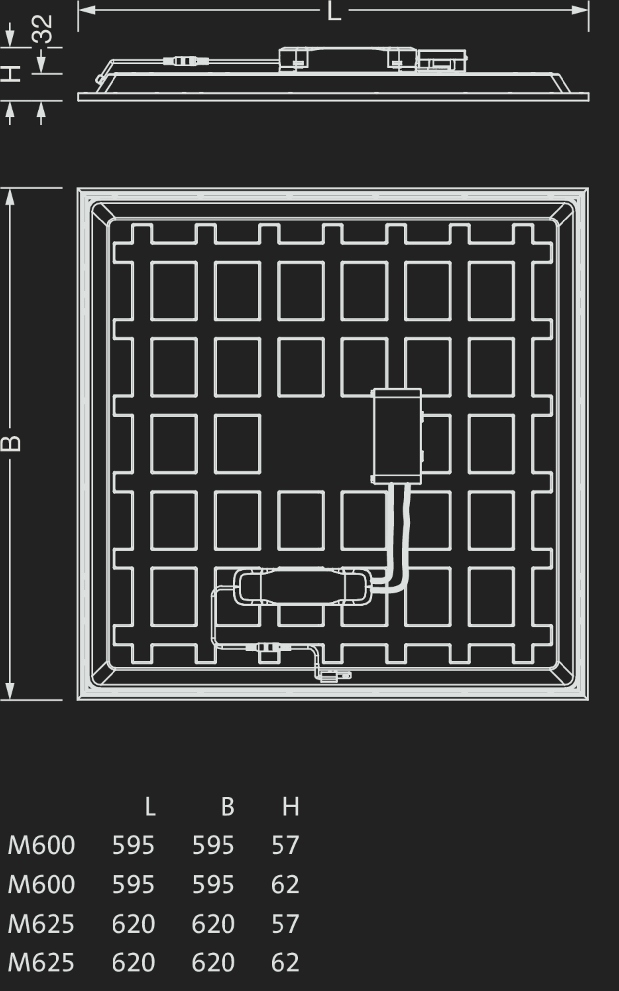 | 4000/5000K | CRI > 80 | 4000lm | 28W | 145lm/W | DALI 2, Multilumen | 620x620 | 1,9 | 121,80 |