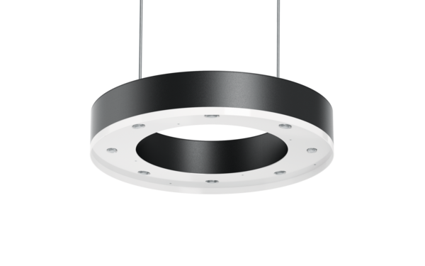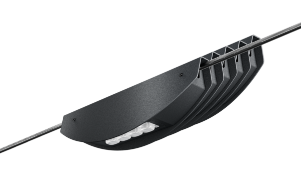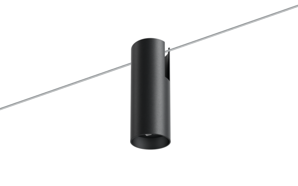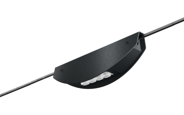 Flache zylindrische Seilleuchte für eine gezielte Außenbeleuchtung.