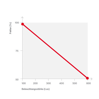 Zahlen entstammen aus wissenschaftlichen Untersuchungen der TU Ilmenau: „Nutzen einer besseren Beleuchtung“, 1998 Gall, Völker